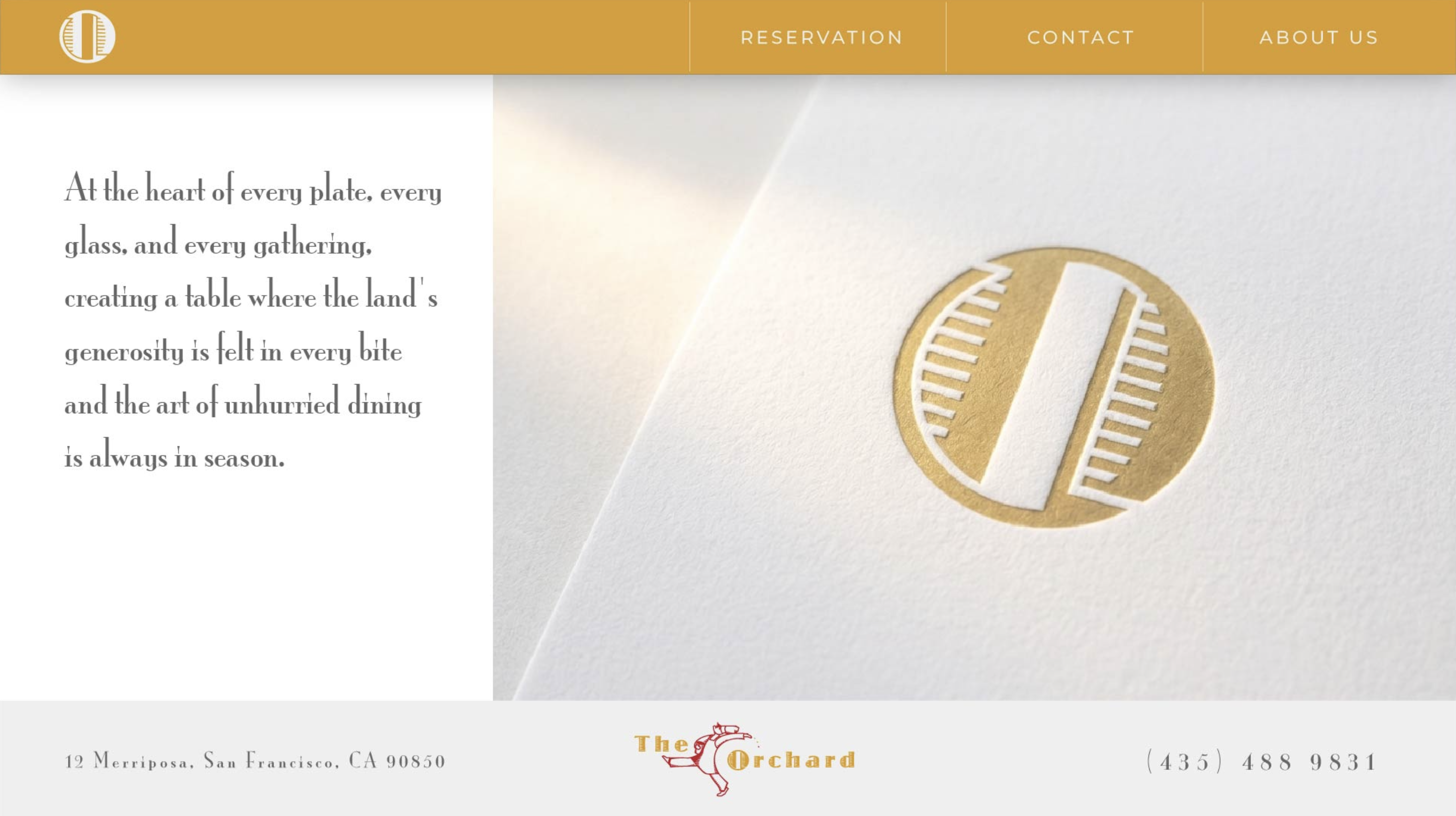 The Orchard is a self-initiated branding project conceived during my undergraduate studies and fully realized as an independent professional work. The concept is based on an upscale dining establishment with a distinctly rustic character, and carries a culinary philosophy in which fruit serves as the foundational ingredient across every dish and course. This solo project encompasses the restaurant's complete brand identity, including logo design, visual language, color palette, typography, spread across multiple touchpoints.